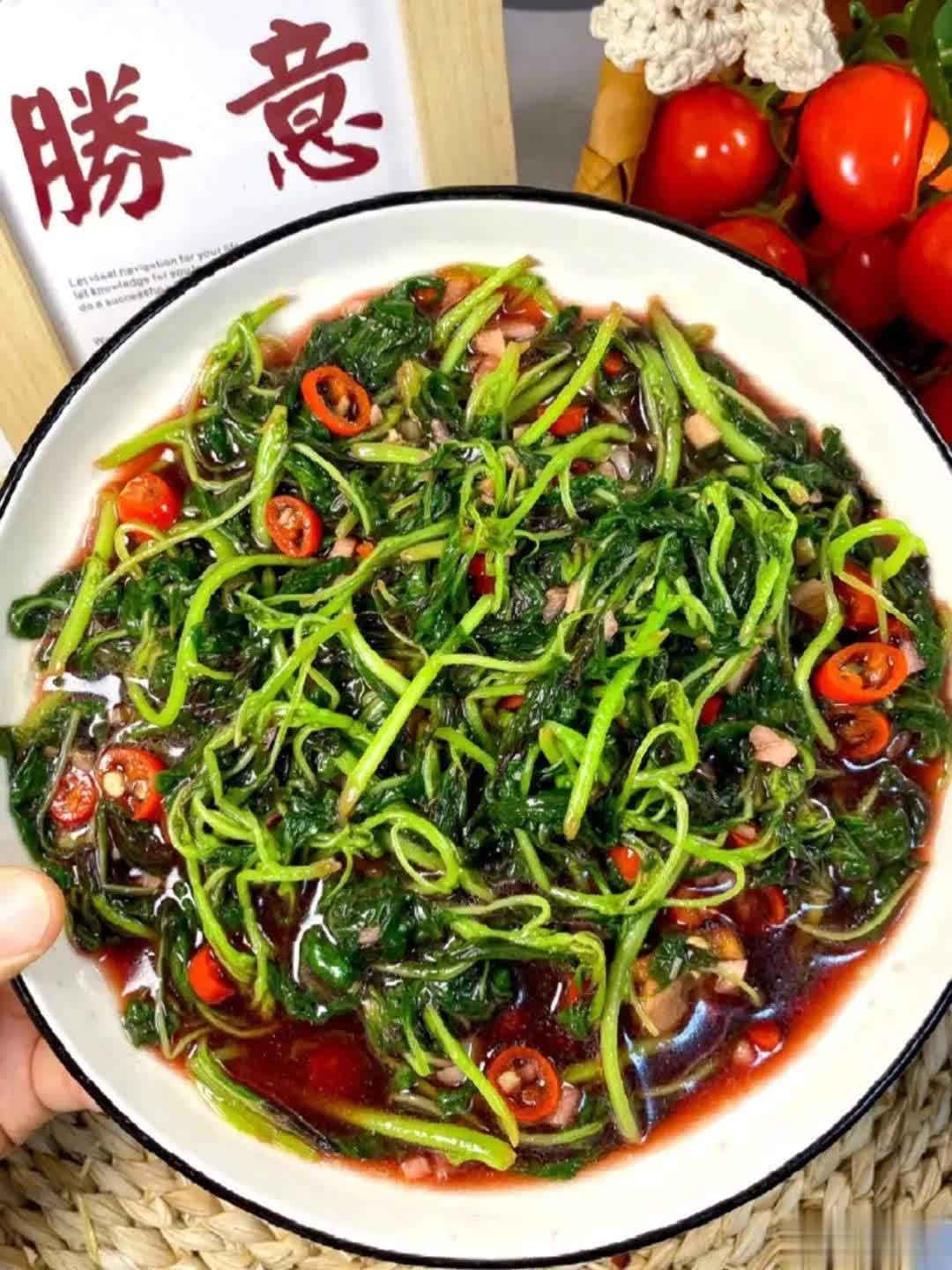 03 清炒红苋菜✅ 亮点:四月红苋菜正软嫩,是补铁补钙的好选择,还富含花青素帮助抗氧化。用蒜蓉旺火快炒,叶片软滑、茎秆脆嫩,汤汁天然红润。入口鲜甜回甘,没有粗纤维感,比菠菜更柔顺。低脂高纤,清爽解腻,从下锅到装盘只需三分钟。